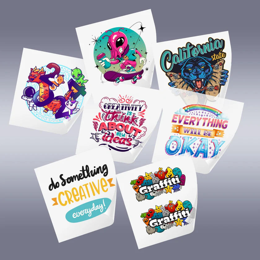 See How Cool Your Designs Can Be! Try our DTF (that means Direct-To-Film) pack to see how bright and fun your designs turn out.